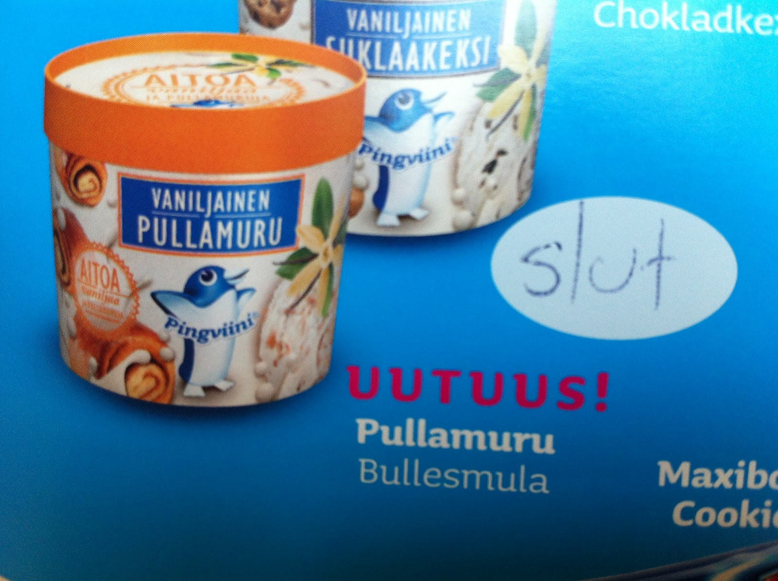 The Pingviini ice cream brand makes PULLAMURU ice cream. That's Finnish for cinnamon bun crumbles. You want it, admit it. Slut.