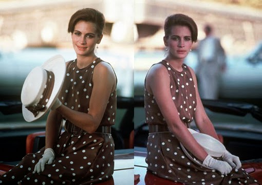 Today, I was sitting on the platform waiting for my train. A lady with a brown bag with white dots was sitting next to me. I took a note of her bag cause it reminded me of one of Julia Roberts dresses in Pretty Woman.